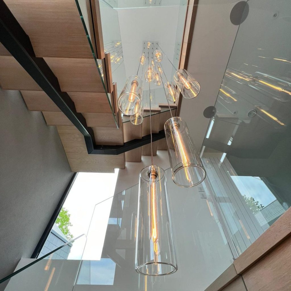 Over the years we’ve watched countless entryways be transformed by our bespoke installations in a variety of cluster arrangements. From cluster, vertical, flush and pitched to bunched, linear and fixed lighting styles, we assess your space and design the best possible lighting solution for you. Enquire with our team to hear more or continue on to discover inspiration with our entrance lighting project gallery.